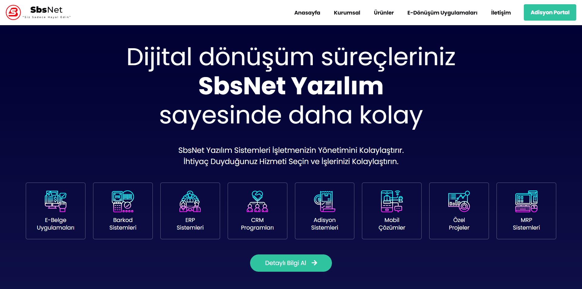 SbsNet Yazılım için hazırladığımız web site projemiz
